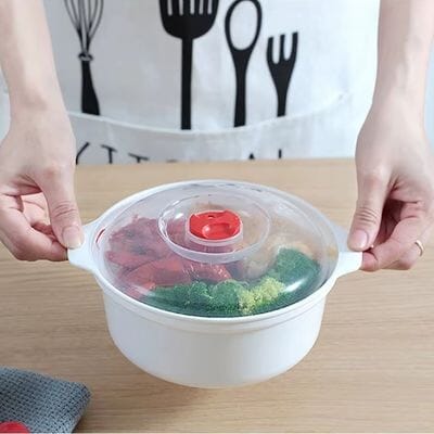 Avez-vous déjà rêvé d'une cuisine sans vaisselle qui s'accumule ? Notre cuiseur vapeur pour micro-ondes incarne cette simplicité tant recherchée. Son design ingénieux avec couvercle à poignées intégrées vous permet de cuire, égoutter, assaisonner et servir dans le même récipient. Ici, vous utilisez une cocotte, un passeoire, un saladier et une assiette de service. Aujourd'hui, un seul contenant suffit. Cette solution tout-en-un s'adapte parfaitement à votre rythme de vie, que vous soyez pressé le matin ou fatigué le soir après une longue journée de travail.