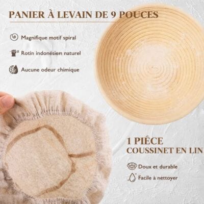 - Banneton en rotin naturel respirant pour une fermentation parfaite