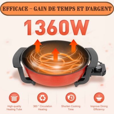 Que vous soyez amateur de cuisine asiatique, de bons petits plats mijotés ou simplement à la recherche d'un appareil polyvalent, cette marmite électrique devient rapidement le centre de votre cuisine. Sa puissance de 1360W assure une chauffe rapide et homogène, tandis que ses 5 niveaux de température vous offrent une précision optimale pour chaque recette.