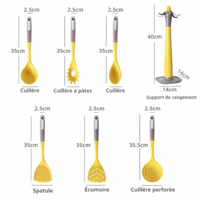 Pourquoi s'encombrer d'ustensiles disparates qui s'entassent dans vos tiroirs ? Notre ensemble de 7 pièces comprend tous les outils nécessaires pour chaque étape de vos préparations : spatule plate, cuillère, pelle, fouet et bien plus. Avant, vous deviez jongler entre différents ustensiles, souvent incompatibles entre eux. Maintenant, vous disposez d'une collection cohérente, aux poignées ergonomiques en ABS qui offrent une prise en main confortable et sûre.